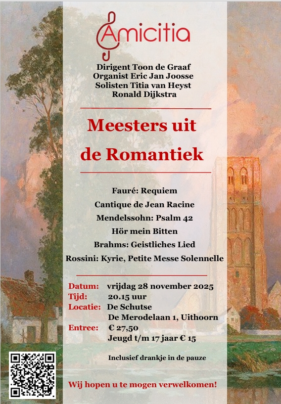 Vrijdag 27 november 2026 is ons jubileumconcert, waarin we de Grosse Messe van Mozart zingen.